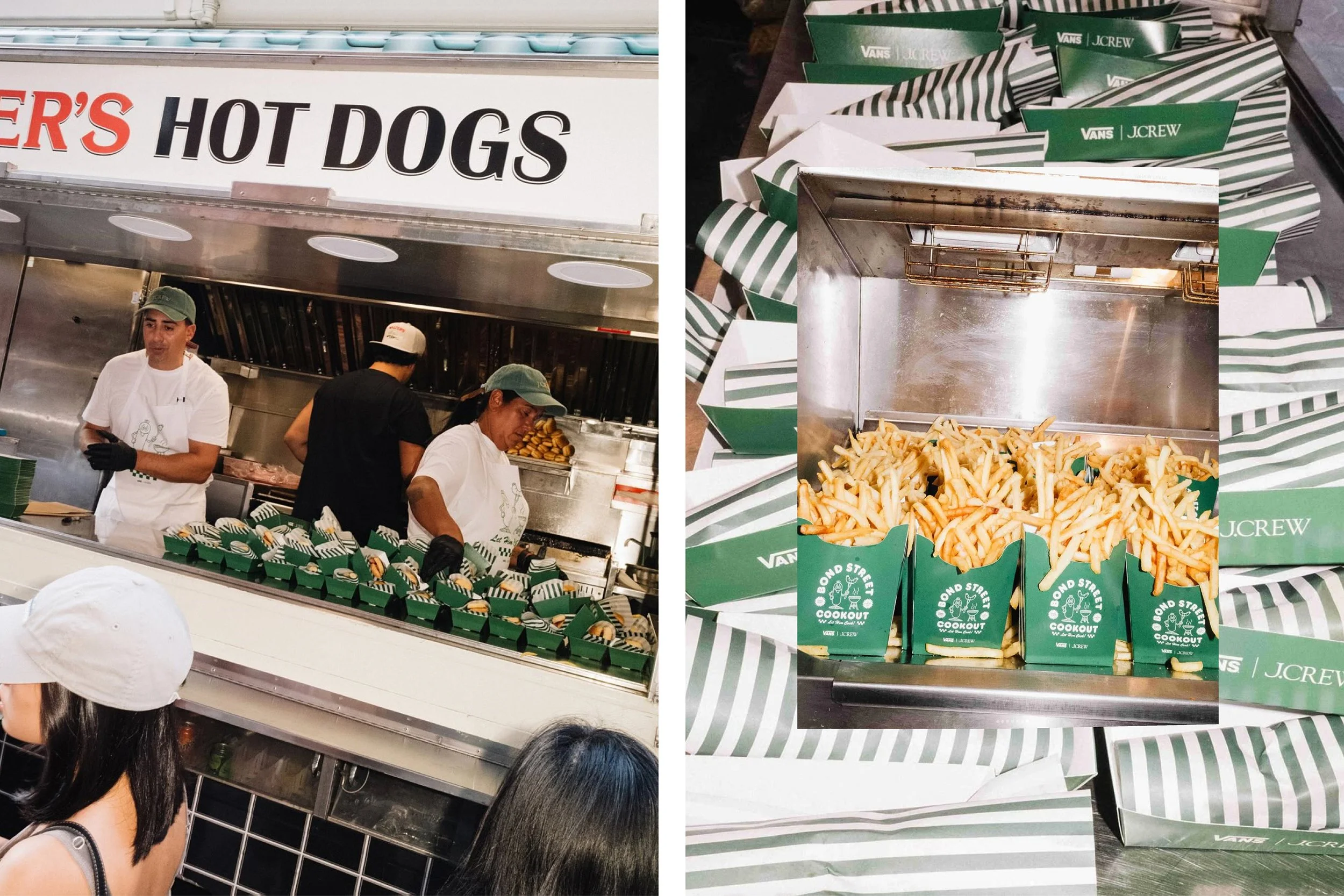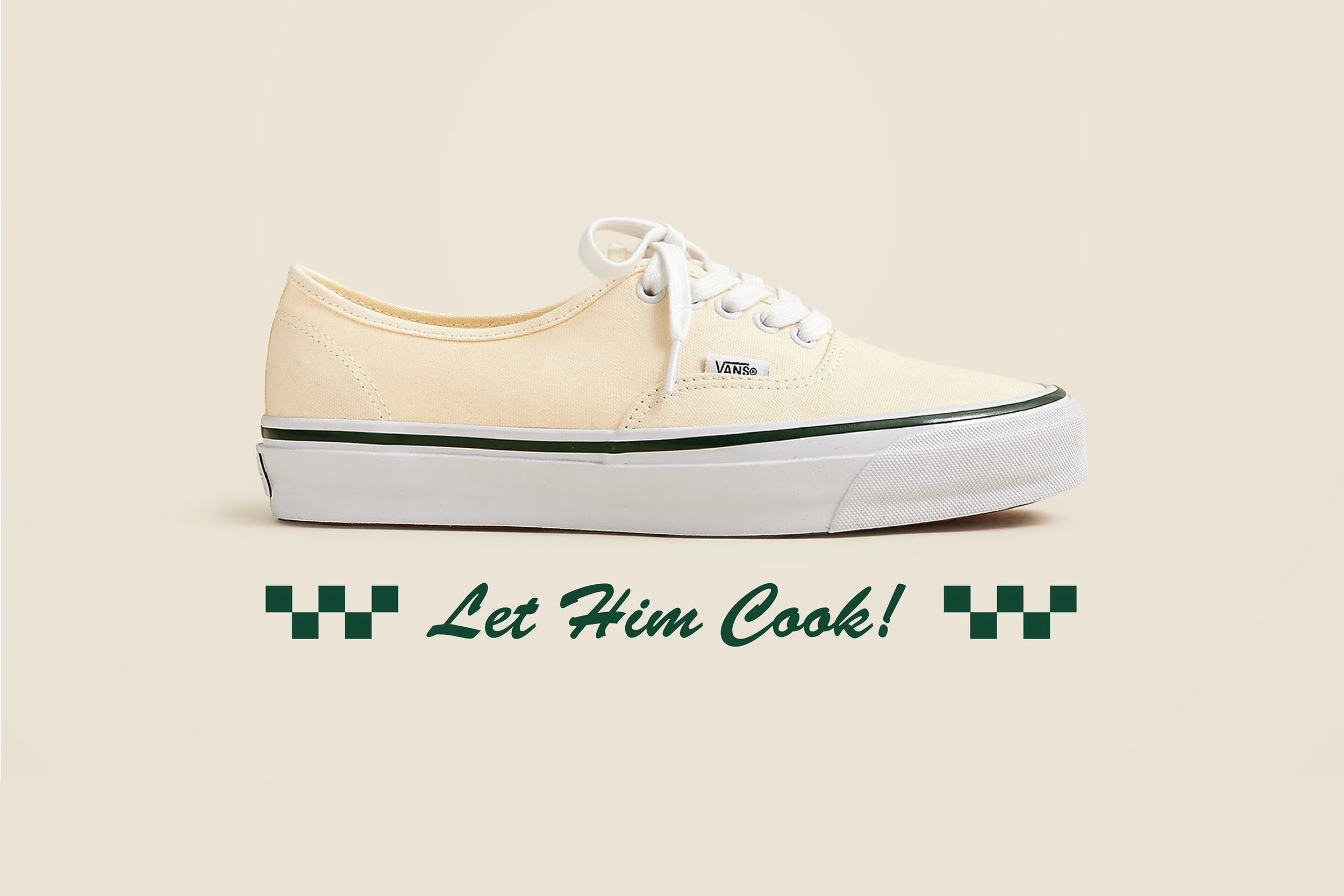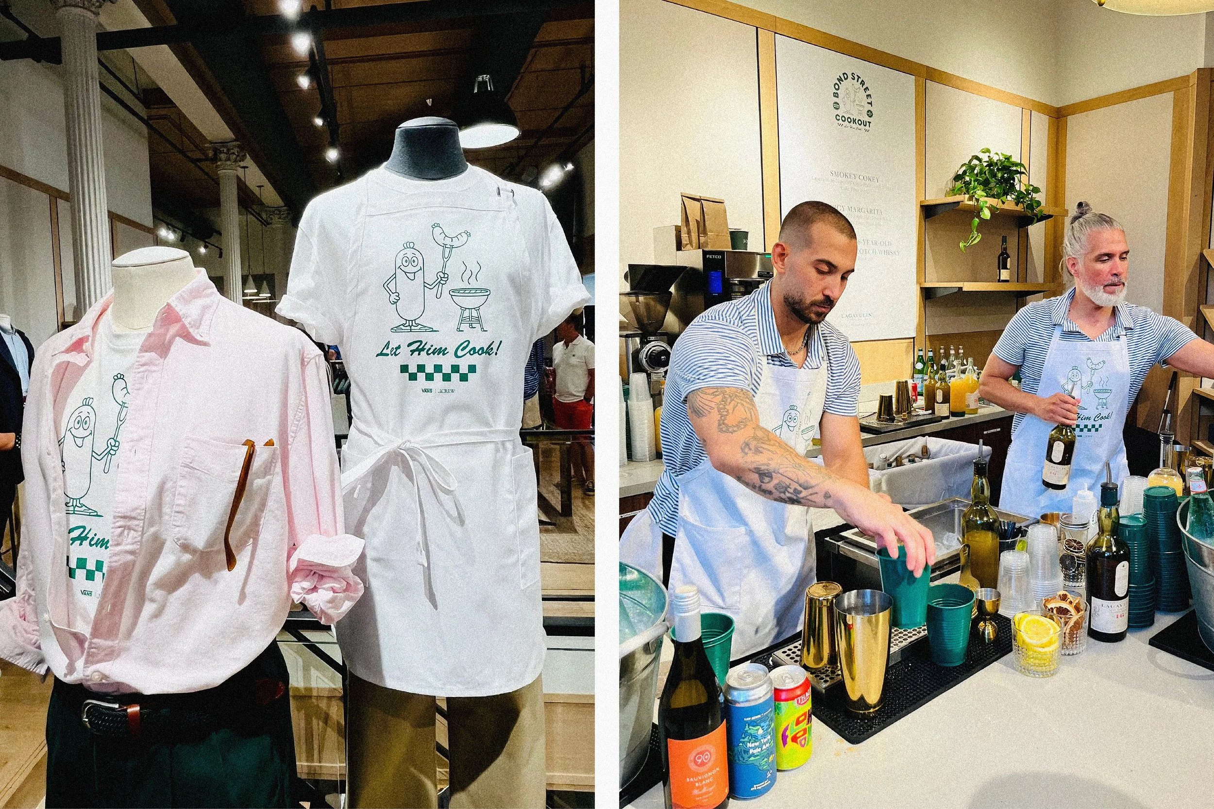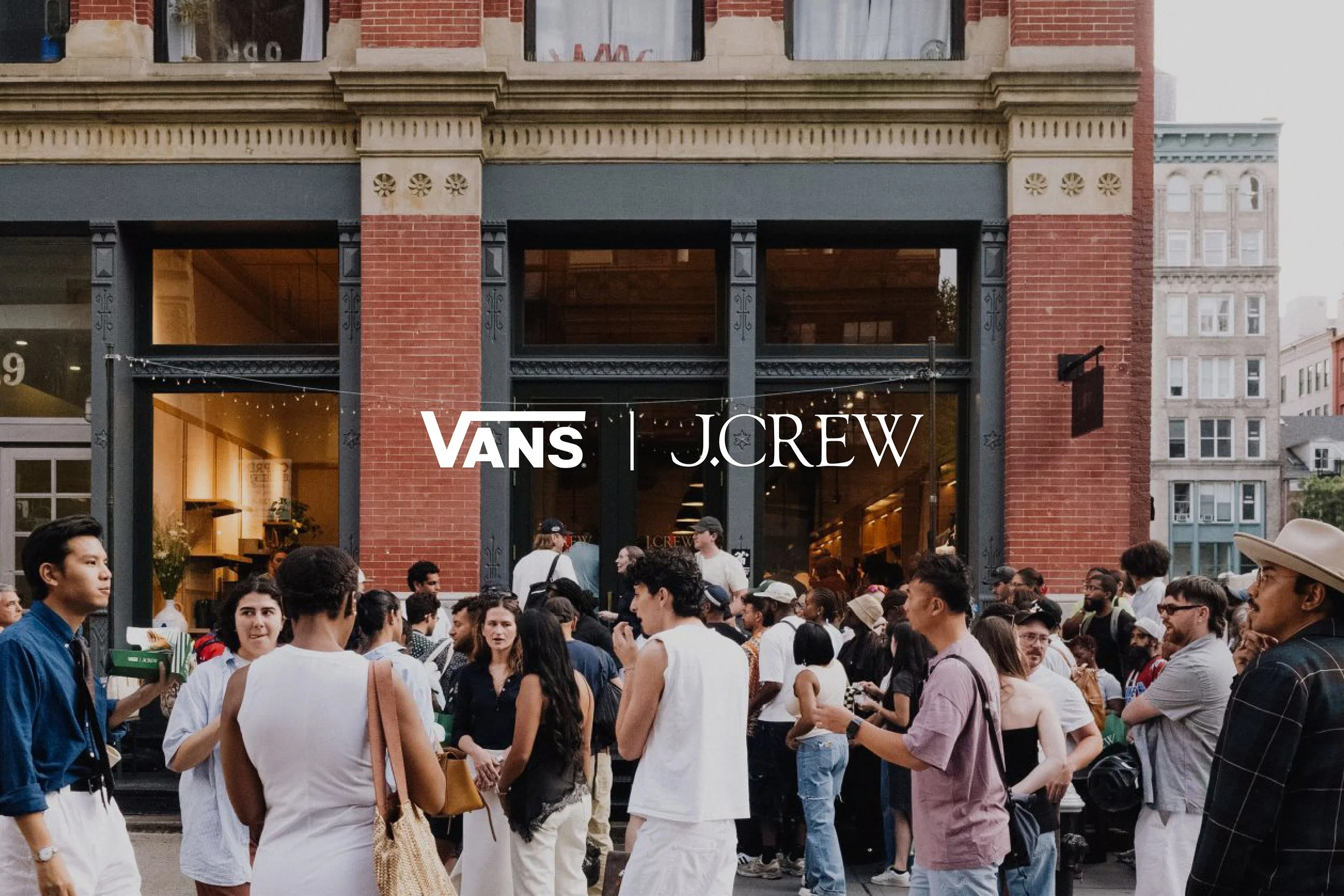 To help celebrate their newest collab with Vans, we worked with the J.Crew men’s team to create a suite of graphics for their cookout-inspired event. With the simple directive “make it fun,” we quickly imagined a hot dog manning the grill while rocking a pair of Authentics. Our line “Let Him Cook!” anchored the graphics which flexed across aprons, tees, napkins, stickers, packaging and more. Photos by J.Crew, JohnD.