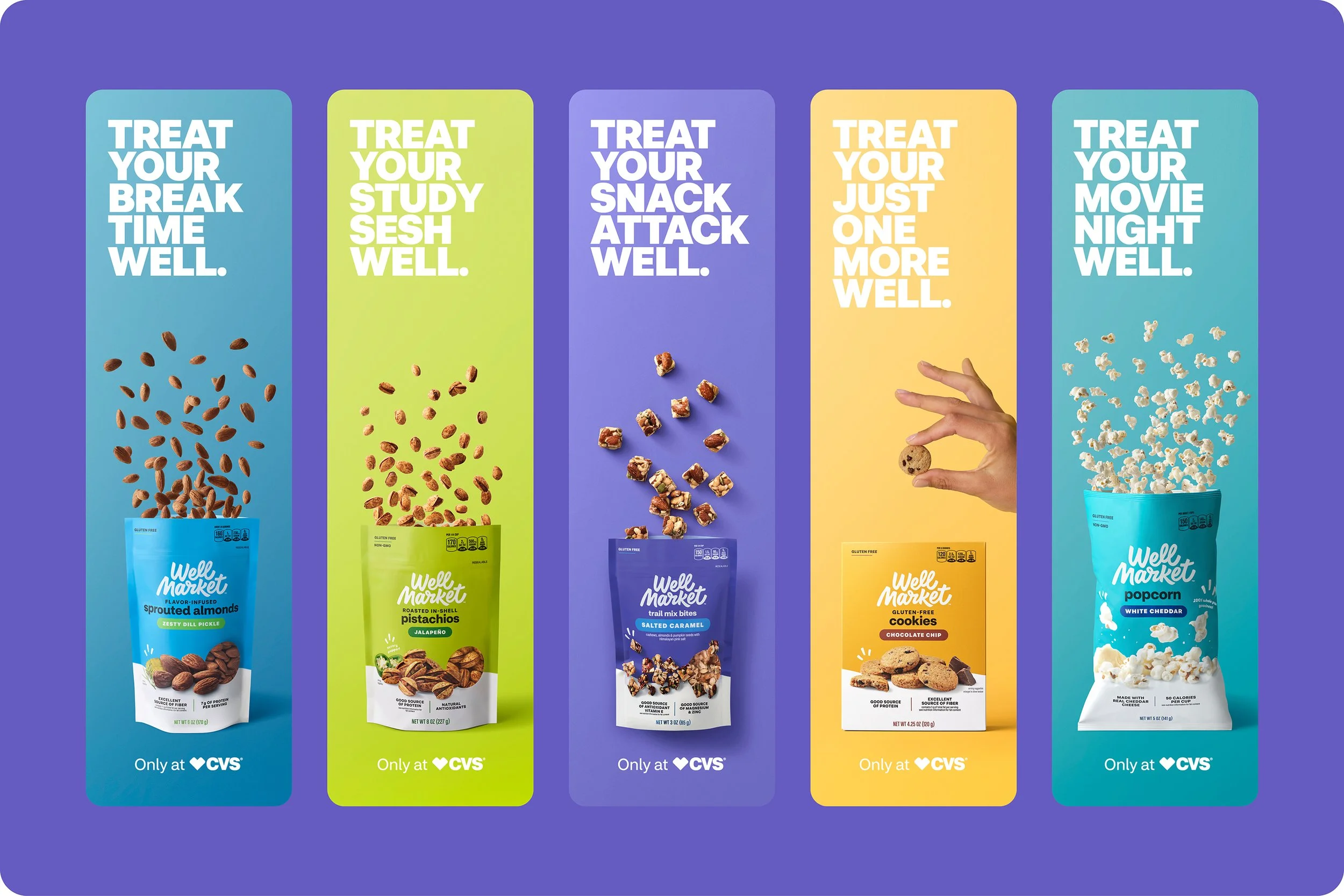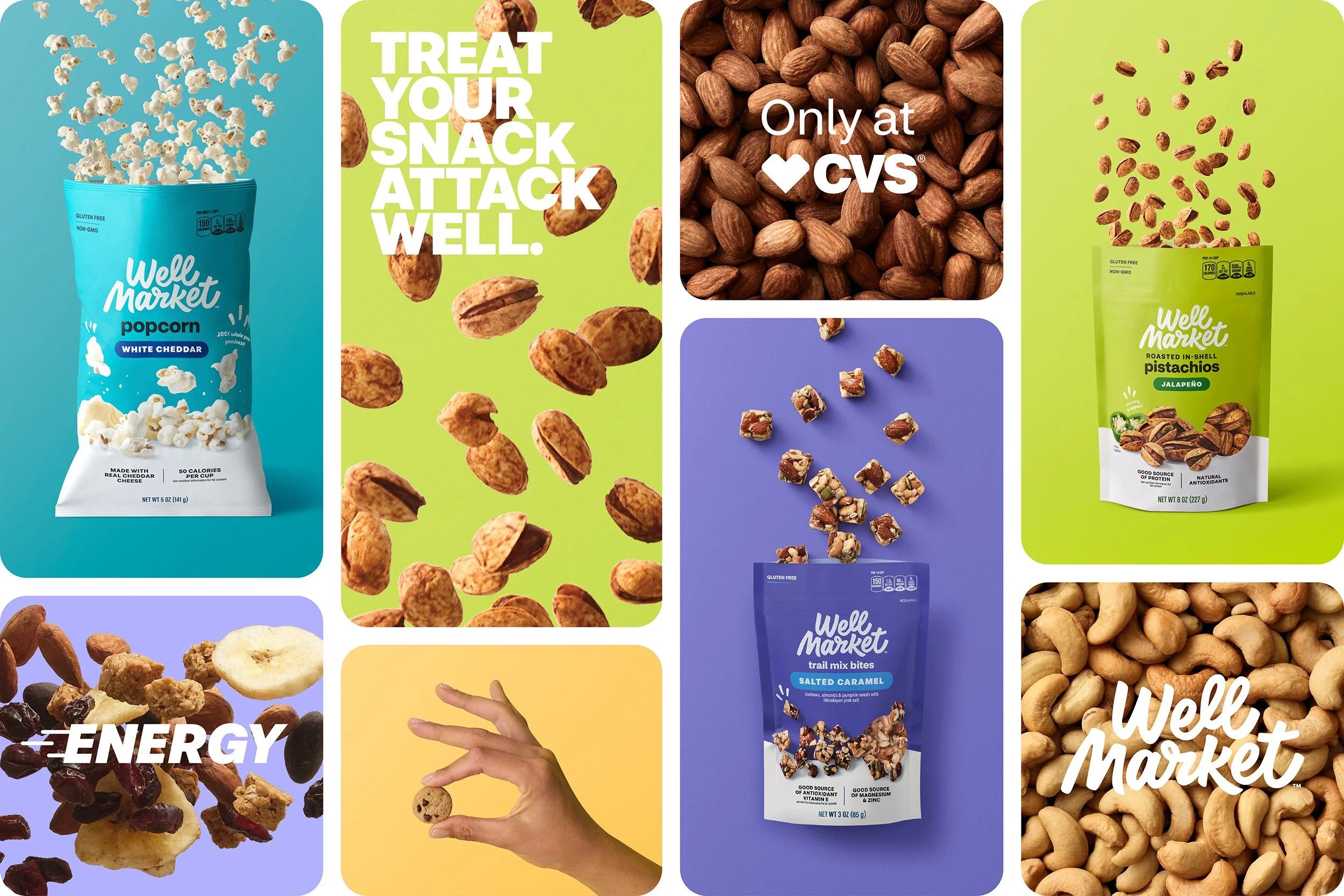 Welcome to Well Market at CVS! No one wants to take snacking too seriously, which is why our launch campaign for Well Market struck a balance between fun, spontaneity, loads of flavor cues, and the very important commitment to Treating Yourself Well. To bring this delicious idea to life, we crafted a brand world, launched a campaign, and “tested” an embarrassing amount of chocolate-covered almonds.